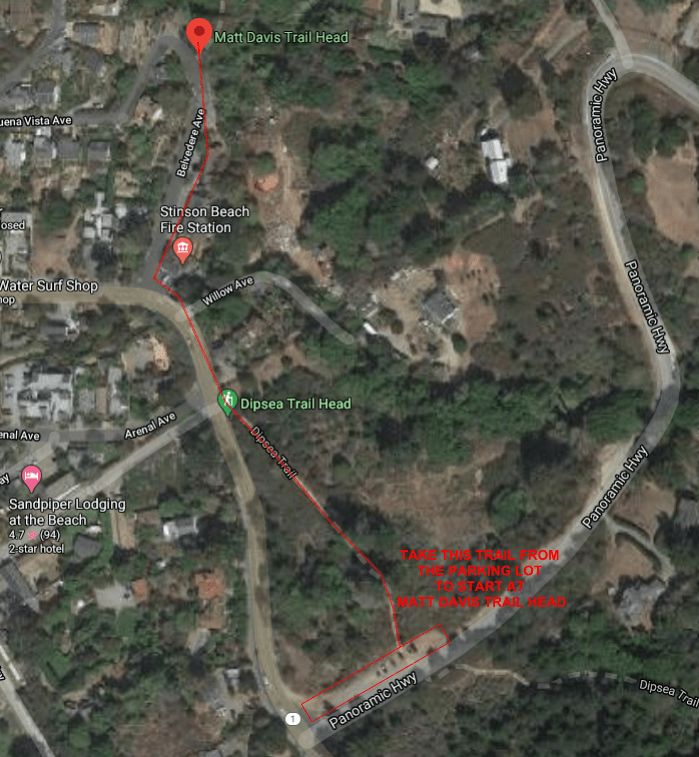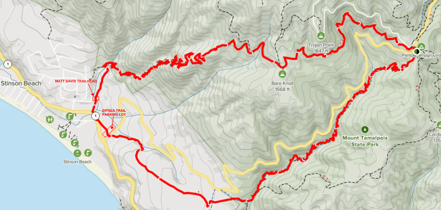 We parked at the Dipsea Trailhead Parking Lot and did a loop! Taking Dipsea Trailhead up to Pantoll then down Steep Ravine Trailhead back to the parking lot.